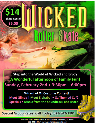 Get ready for a spellbinding time at our Wicked Themed Roller Skate on Sunday, February 2, 2025! This magical event is inspired by the beloved Broadway musical Wicked. Skate over the Rainbow, meet Glinda […]