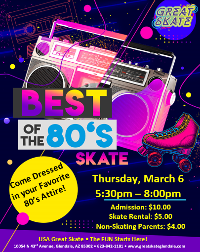 🌟🎶 Lace up your skates and step back in time! 🎶🌟 Join us at USA Great Skate for an epic 80’s-themed skate night! 🕺💜🎧 🛼 BEST OF THE 80’s SKATE […]