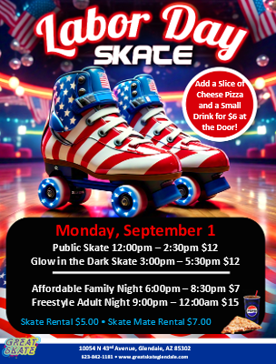 🛼Celebrate Labor Day on Wheels! 🛼 Join us Monday, September 1st at Great Skate Glendale for a full day of fun, music, and patriotic vibes! 🎉 Skating Sessions for Everyone […]