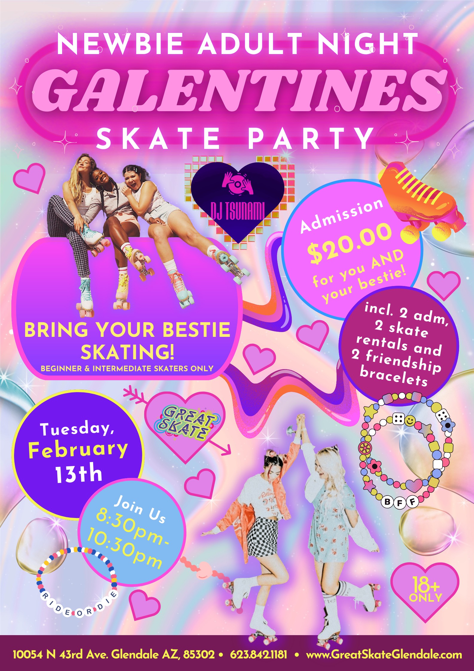 Bring a your BESTIE this special Galentine Day! We will have a speical guest DJ - DJ Tsunami $20.00 for two admissions, two skate rental and 2 friendship bracelets! or $11.00 admission and skates if you are solo. Dress up for the Galentine Skate Newbie night is for Beginner and Intermediate skaters only. *No Passes* […]