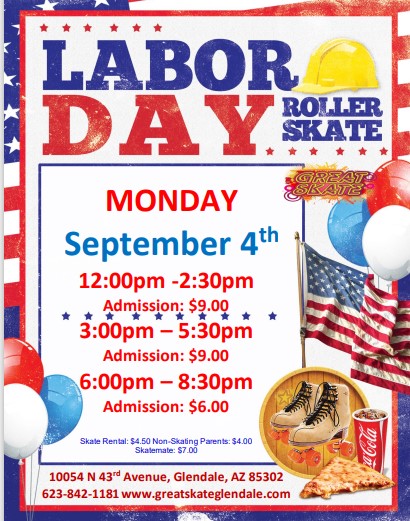HOLDAY - No School - Open All day 12:00pm -2:30pm $9.00 3:00pm - 5:30pm $9.00 6:00pm - 8:30pm $6.00 Skate rental: $4.50 Non-Skating Parents: $4.00