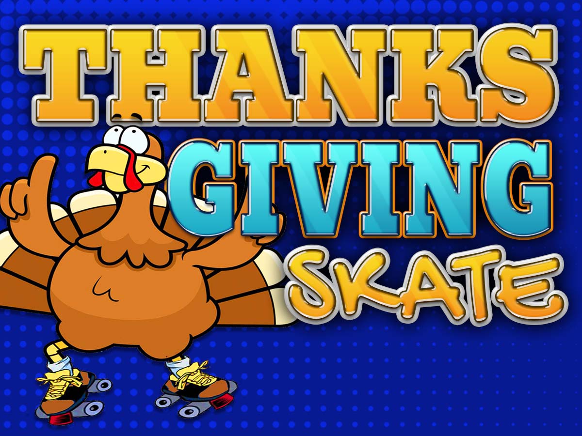 Happy Thanksgiving 5:30pm - 8:00pm Admissions: $9.00 Skate Rentals: $4.50 Add the Skate & Play Game Card for $3.50 more