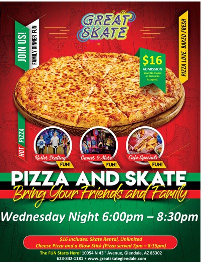 All-You-Can-Eat Cheese Pizza Skating Night! Jul 30  All-You-Can-Eat Cheese Pizza Skating Night! 6:00 pm - 8:30 pm Recurring