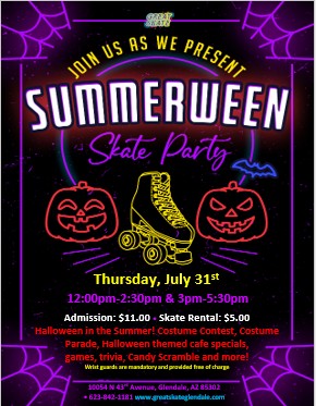 👻🎃 Summerween Skate Party at Great Skate Glendale! 🎃👻 Jul 31 👻🎃 Summerween Skate Party at Great Skate Glendale! 🎃👻 3:00 pm - 5:30 pm