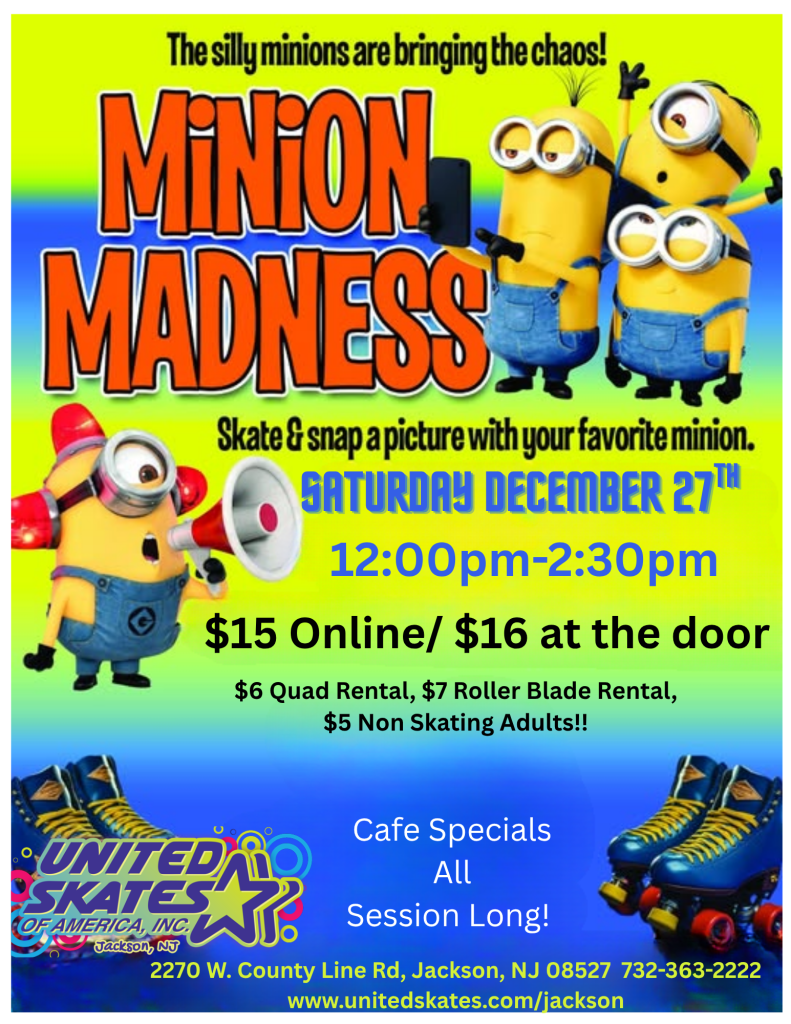 The silly Minions are bringing the chaos to United Skates of America, Jackson, NJ! Come join the fun, skate with friends, and snap a picture with your favorite Minion!
