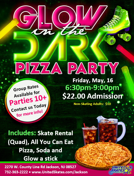 This party is serving up skating, glowing fun, and unlimited pizza for one unforgettable evening.