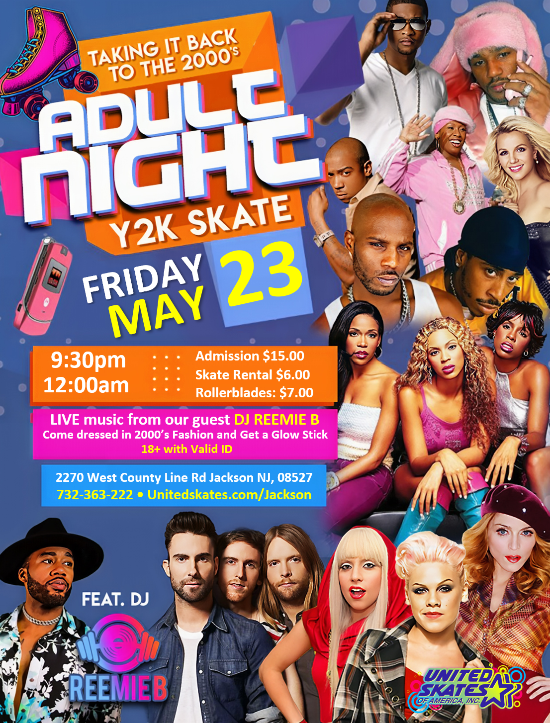 We’re taking it back to the 2000s at United Skates of America – Jackson, NJ for an unforgettable Adult Night on Friday, May 23rd!