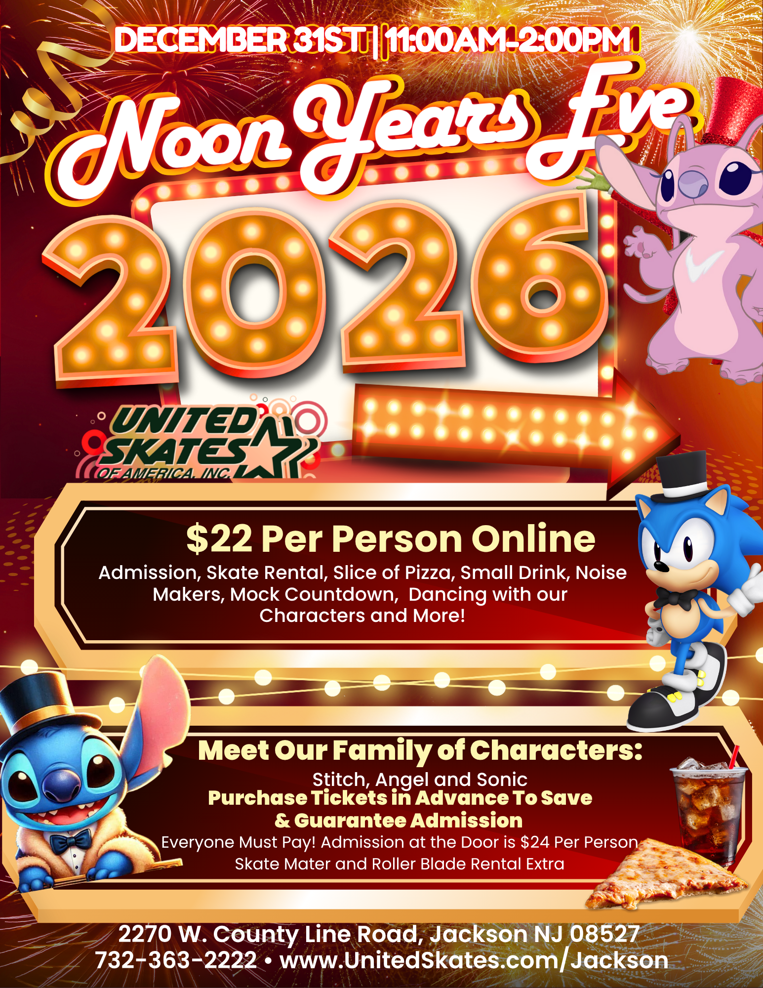 ๐ Noon Yearโs Eve 2026 at United Skates of America โ Jackson, NJ! ๐โจ