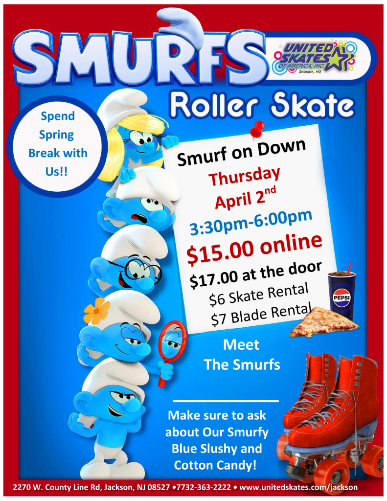Smurf on down to United Skates of America in Jackson for a fun-filled Spring Break event the whole family will love! Meet your favorite blue friends, enjoy skating, music, and sweet treats in a festive atmosphere.