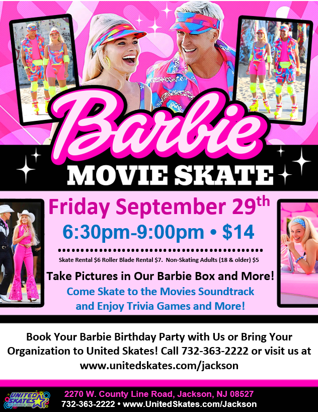 Barbie Theme Night is Here! Come down to United Skates Jackson for our Pink Out Glow Skate!