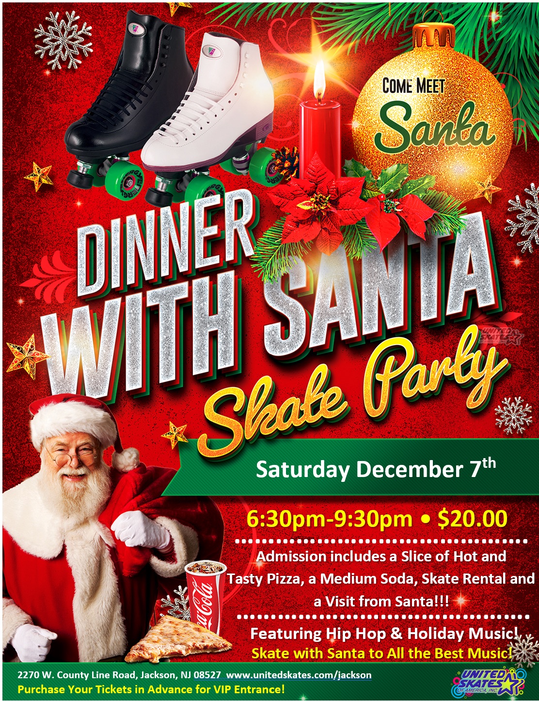 Pizza, Skate and Santa visit, with Hip Hop & Holiday Music.