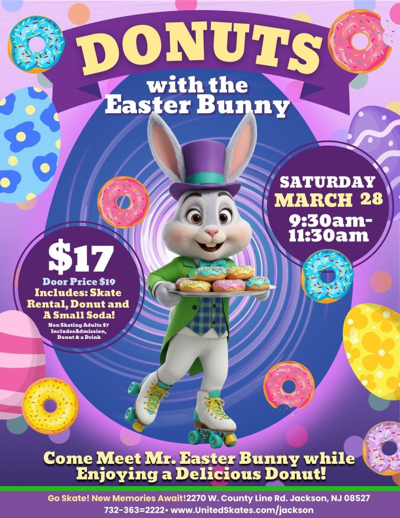 Join us for Donuts with the Easter Bunny and enjoy a fun-filled skate session with a special visit from Mr. Easter Bunny himself!