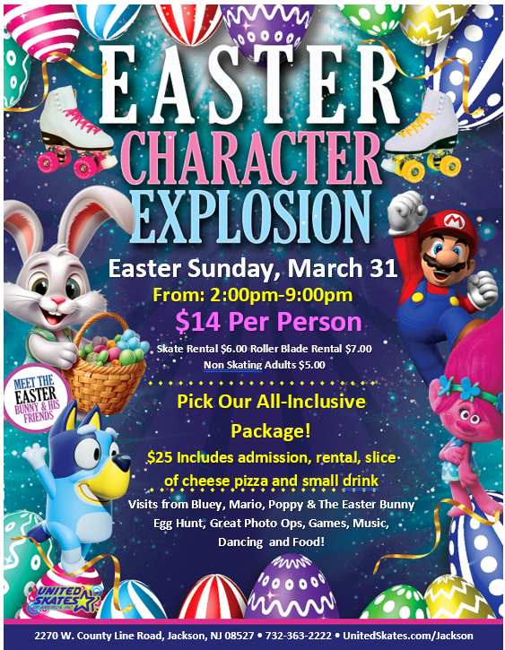 Meet Bluey, Mario, Trolls and the Easter Bunny for a day of fun and more!!