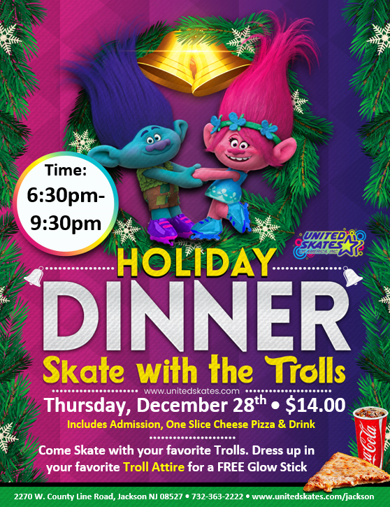Free Dinner Night Public Skate With the trolls. Who LOVES Pizza??