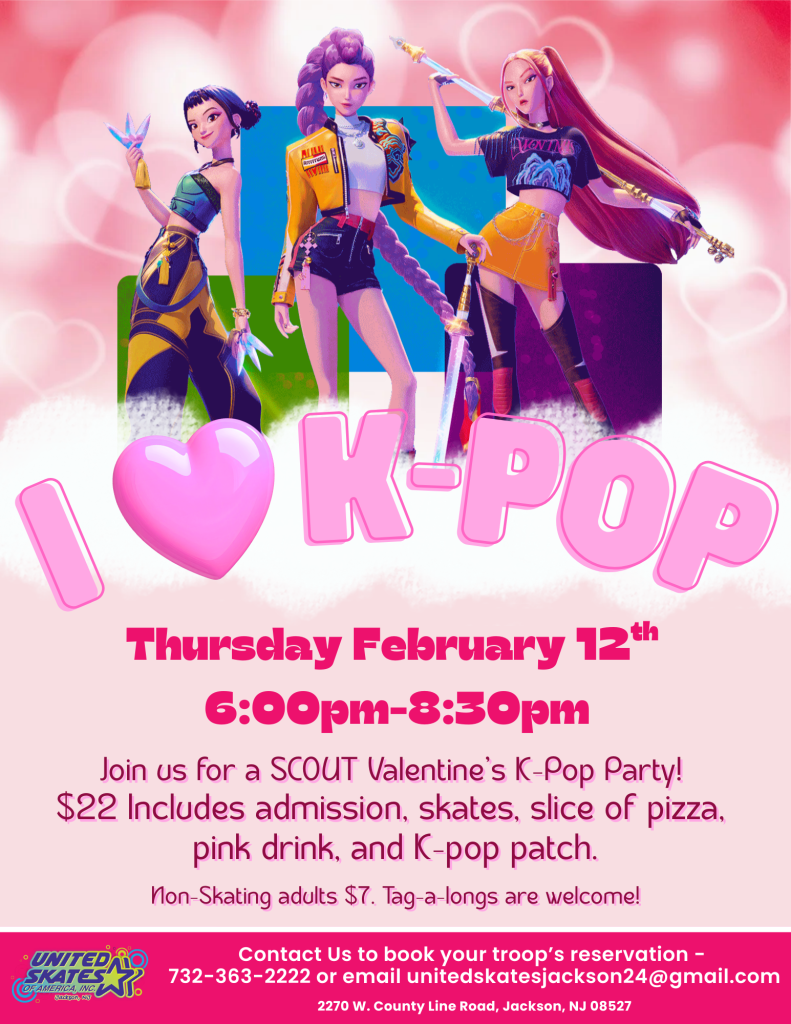 Don’t miss out on our I 💗 K-POP Valentine’s Skate Party at United Skates Jackson — a perfect Valentine’s celebration for your troop!