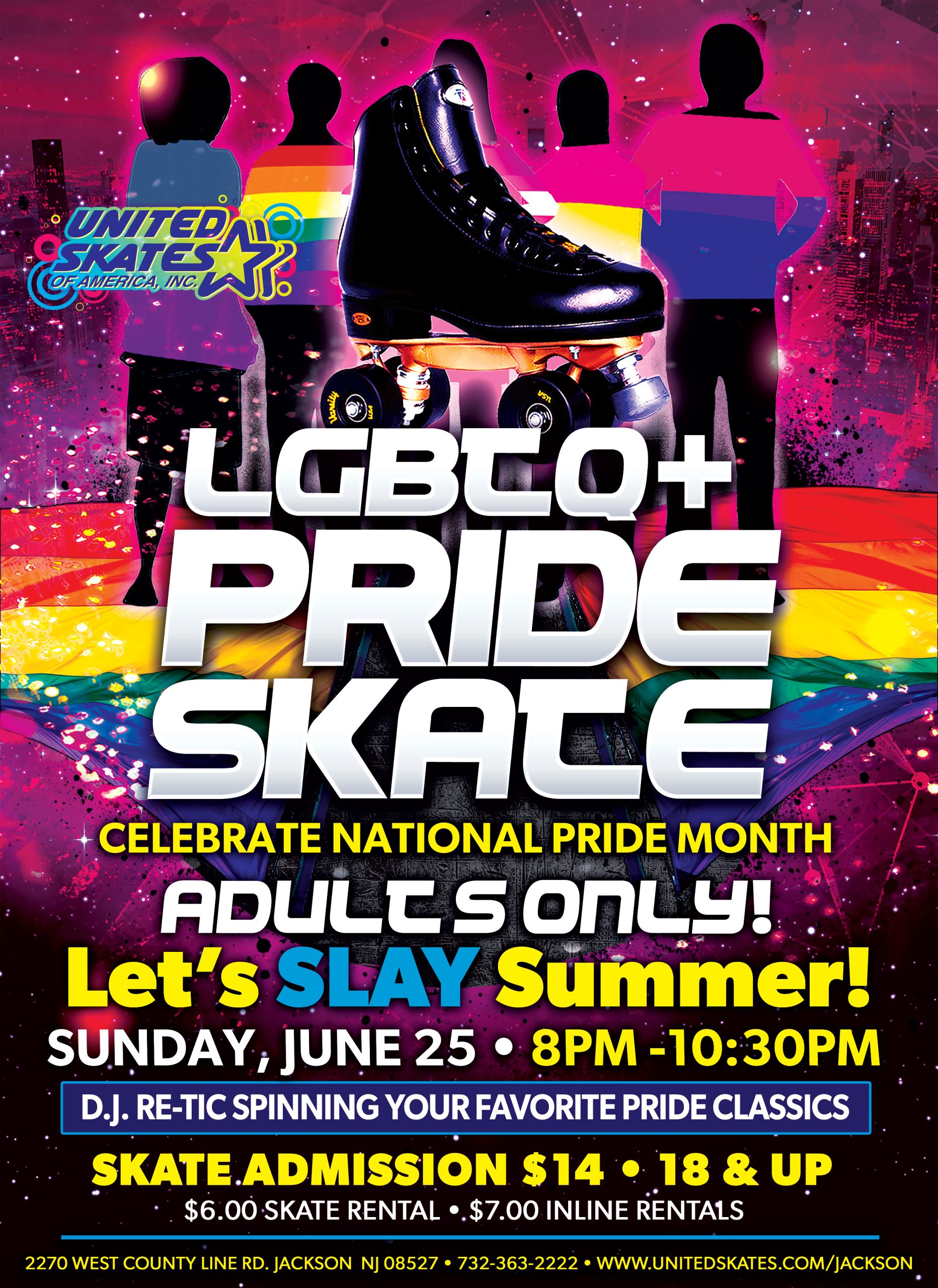You don’t want to miss this event Sunday night adult pride skate ! June 25th 8:00pm-10:30pm come skate with DJ RE-TIC LIVE [must be 18+ with a valid id}