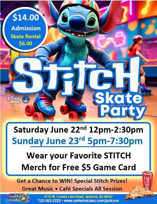 Join us on Saturday from 12:00 PM to 2:30 PM and Sunday from 5:00 PM to 7:30 PM for an out-of-this-world encounter with Stitch!