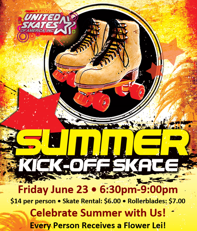 Roller skate rental is $6.00 additional. Roller Blade rental is $7.00 additional. Skate Mate is $6.00 additional.