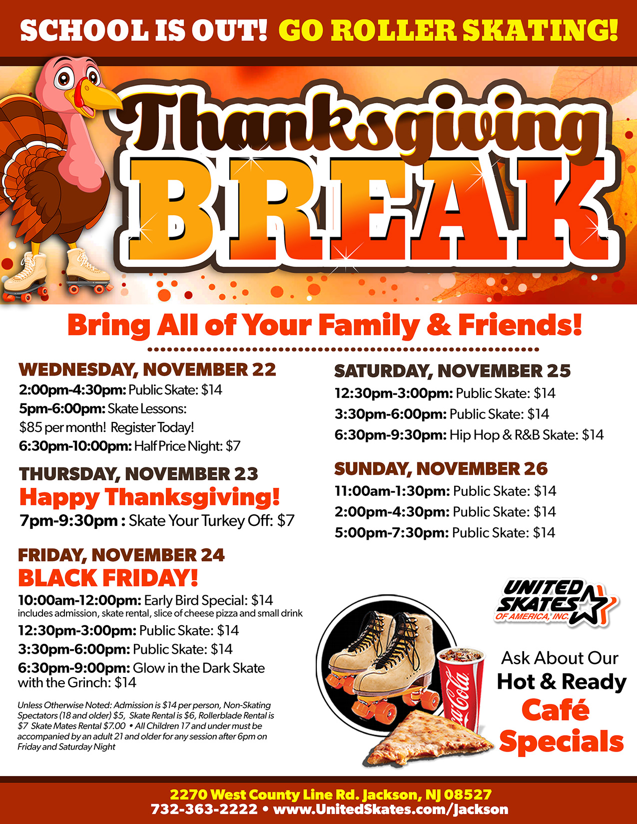 Roller skate rental is $6.00 additional. Roller Blade rental is $7.00 additional. Skate Mate is $6.00 additional.
