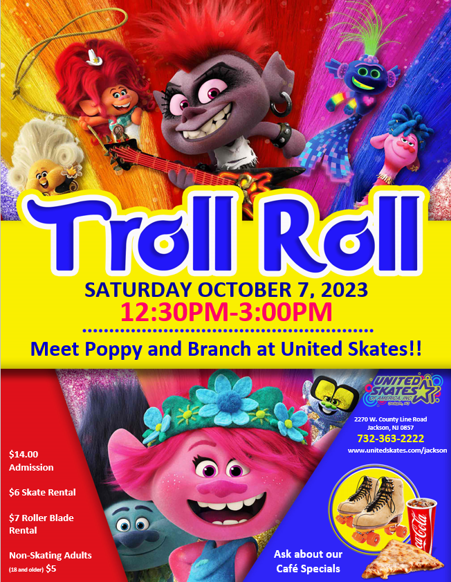 Meet Poppy and Branch at our Troll Roll at United Skates Jackson