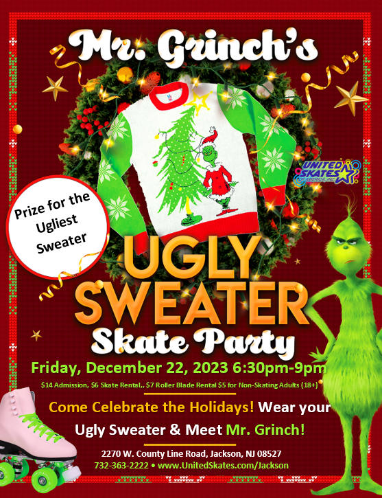 Participate in the Ugly Christmas Sweater Party with the Grinch! A visit from the Grinch himself
