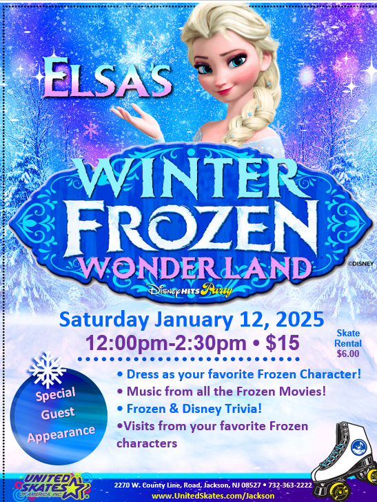 Step Into Elsa’s Winter Frozen Wonderland! Join us for a magical day of skating and Frozen fun with a special guest appearance!  Saturday, January 11, 2025 12:00 PM - 2:30 PM United Skates of America, Jackson, NJ $15 Admission (Skate Rental: $6.00)  Event Highlights:  Dress as your favorite Frozen character! Sing and skate to music from all the Frozen movies! Frozen […]