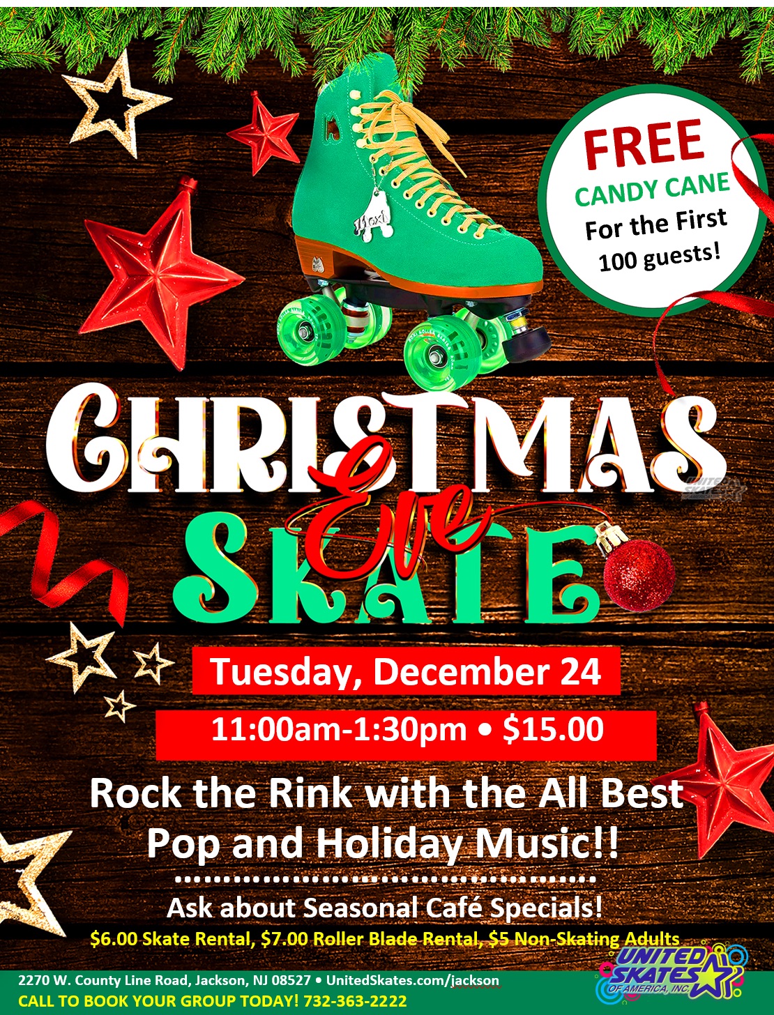Admission $22.00 Includes: Admission, Skate Rental, Slice Of Cheese Pizza, Small Drink & Holiday Fun Patch Special Meet and Greet with The Grinch Reservations Must Be Made in Advance Call Today to Book - 732-363-2222