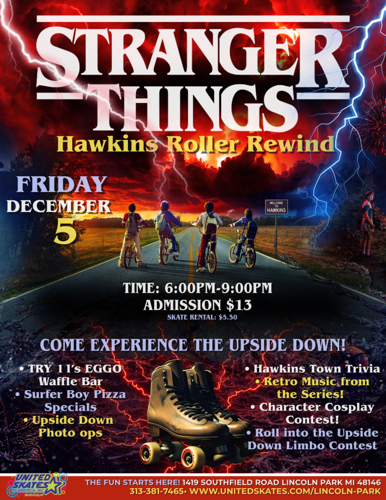 Grab your friends, skate into the Upside Down, and make this a Stranger Things night you’ll never forget! 🛼✨👾