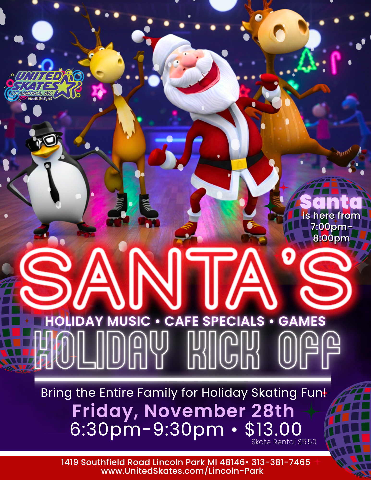 Thatโs right โ the most wonderful time of the year is here, and SANTA is coming to United Skates of America to kick off the holiday season with YOU!