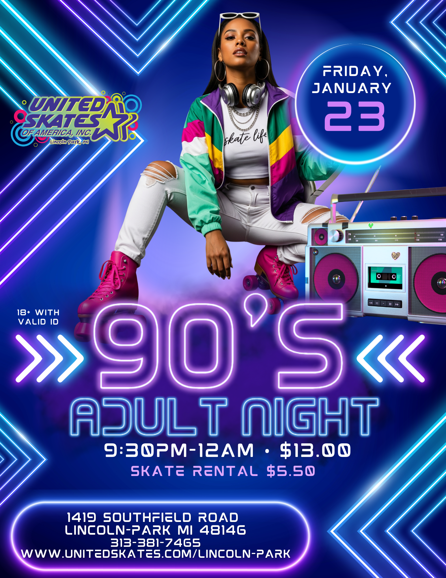 Throw on your flannel, lace up those skates, and step back into the decade of grunge, boy bands, and unforgettable hits! OurΒ 90s Adult Skate NightΒ is the perfect way to rewind, relive, and roll with all your favorite tunes.
