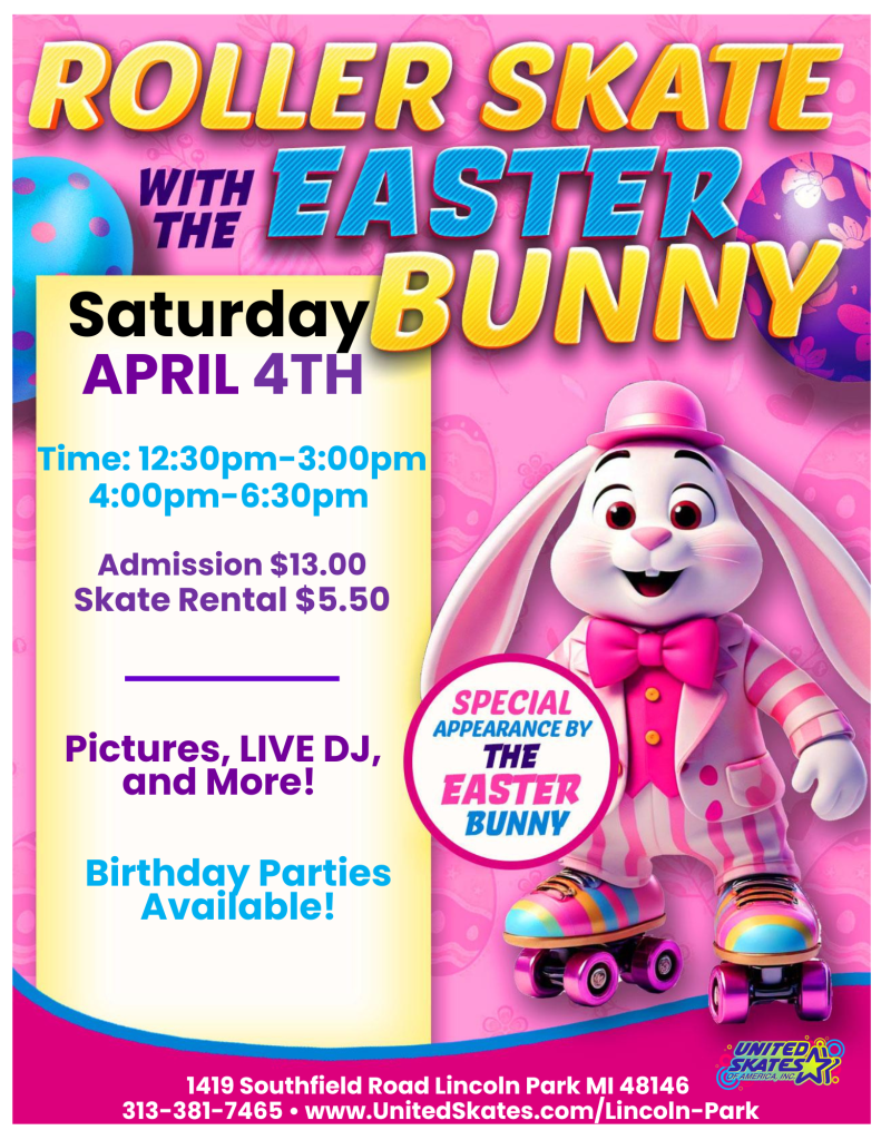 He’s getting ready for his big day but wanted to hop in and say HI! Don’t miss your chance to skate, take photos, and celebrate with the Easter Bunny.