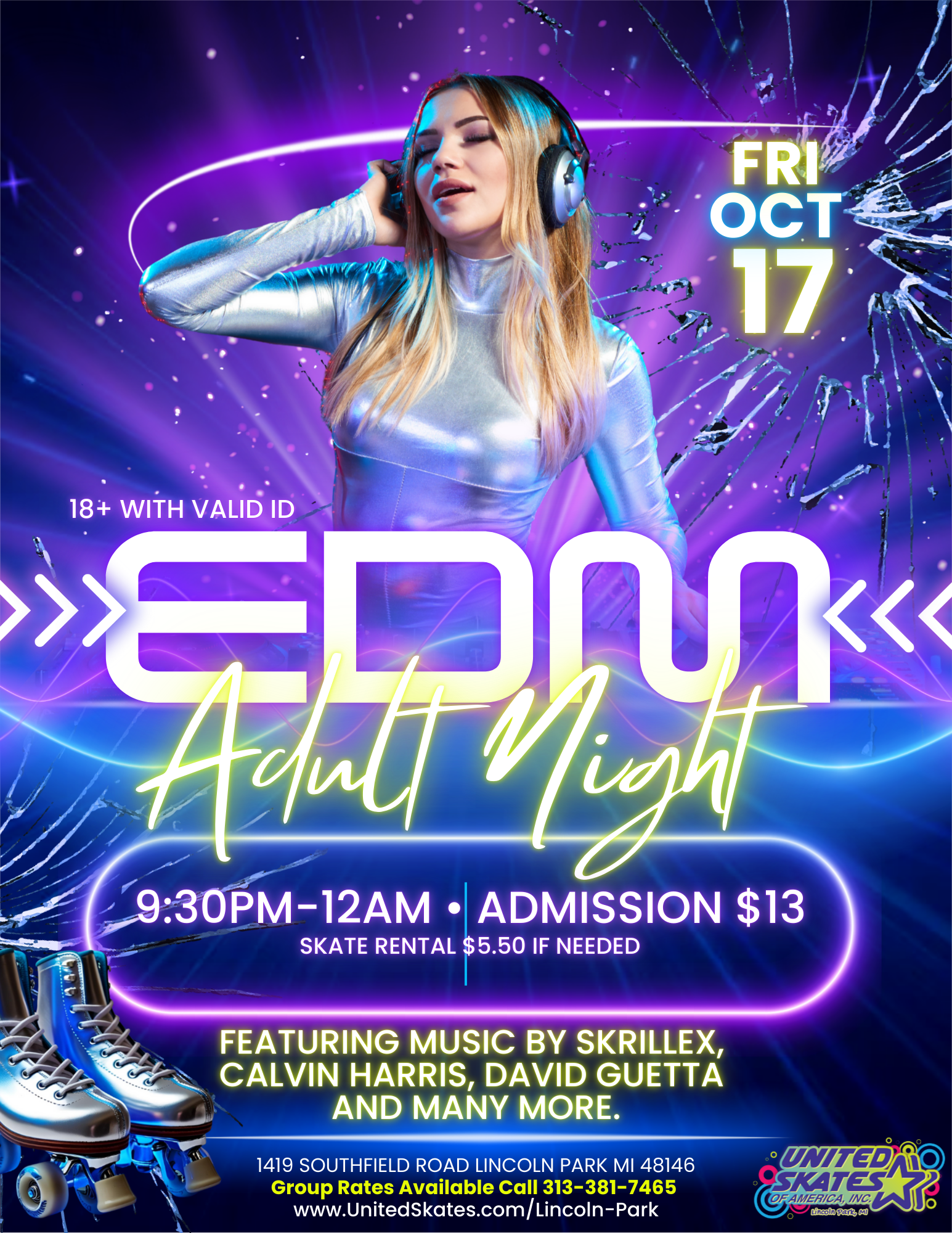 Get ready to skate under the glow of lasers and strobes at the ultimate EDM-fueled night on the rink!