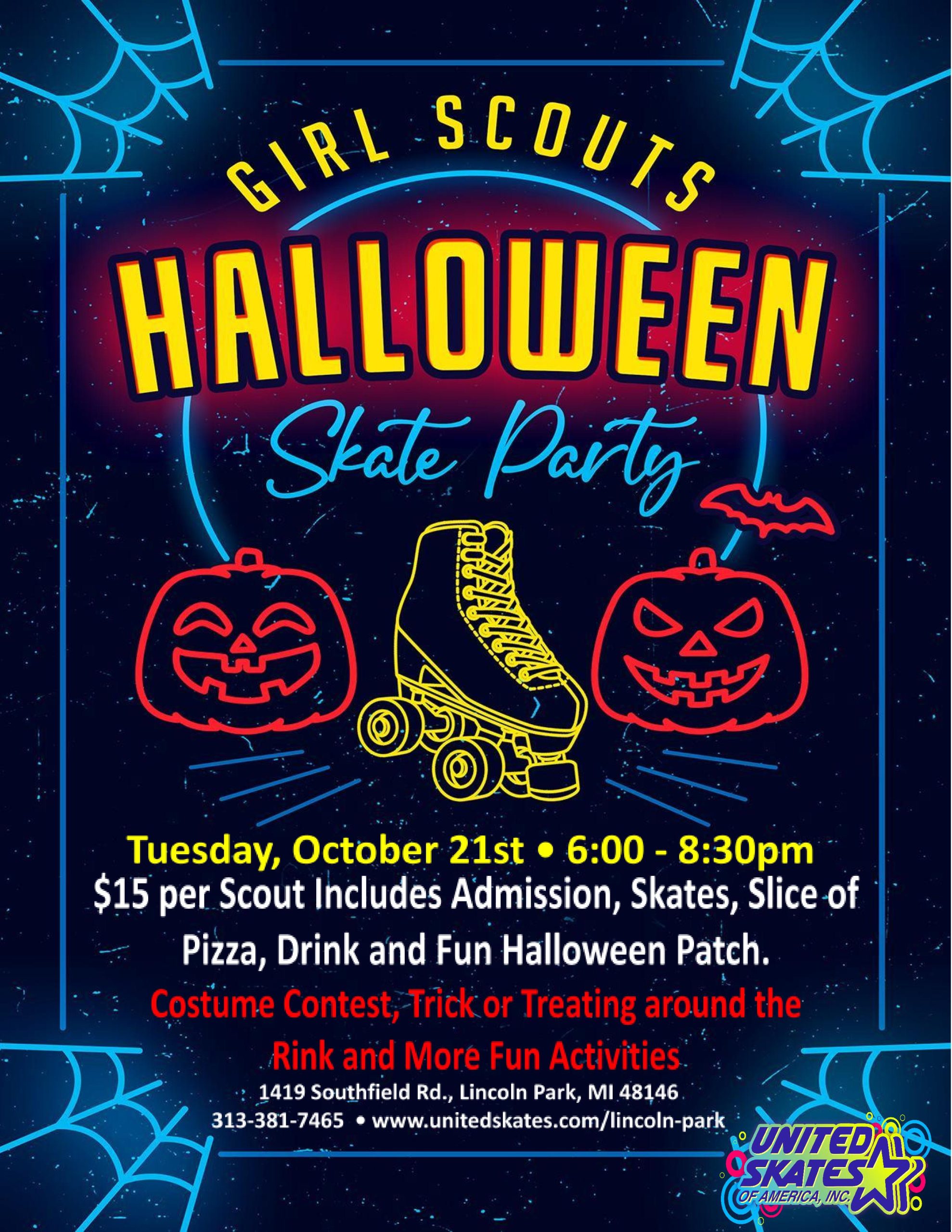 Get ready for a spooktacular night of skating, costumes, candy, and FUN just for Girl Scouts! π»β¨