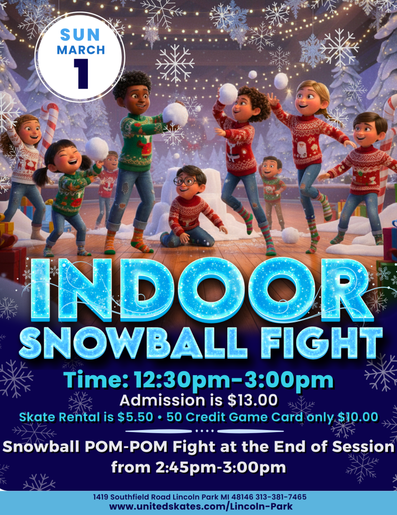 Get ready for an EPIC indoor snowball fight — no coats, no cold, just nonstop winter fun! Skate, play, and dodge snowballs in a one-of-a-kind experience the whole family will love.