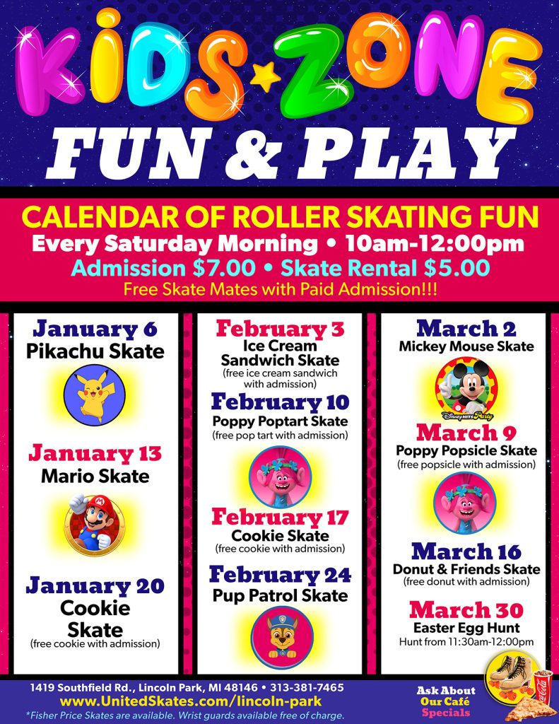 Saturday, March 9th Poppy Popsicle Skate special appearance by Poppy (free popsicle with paid admission)
