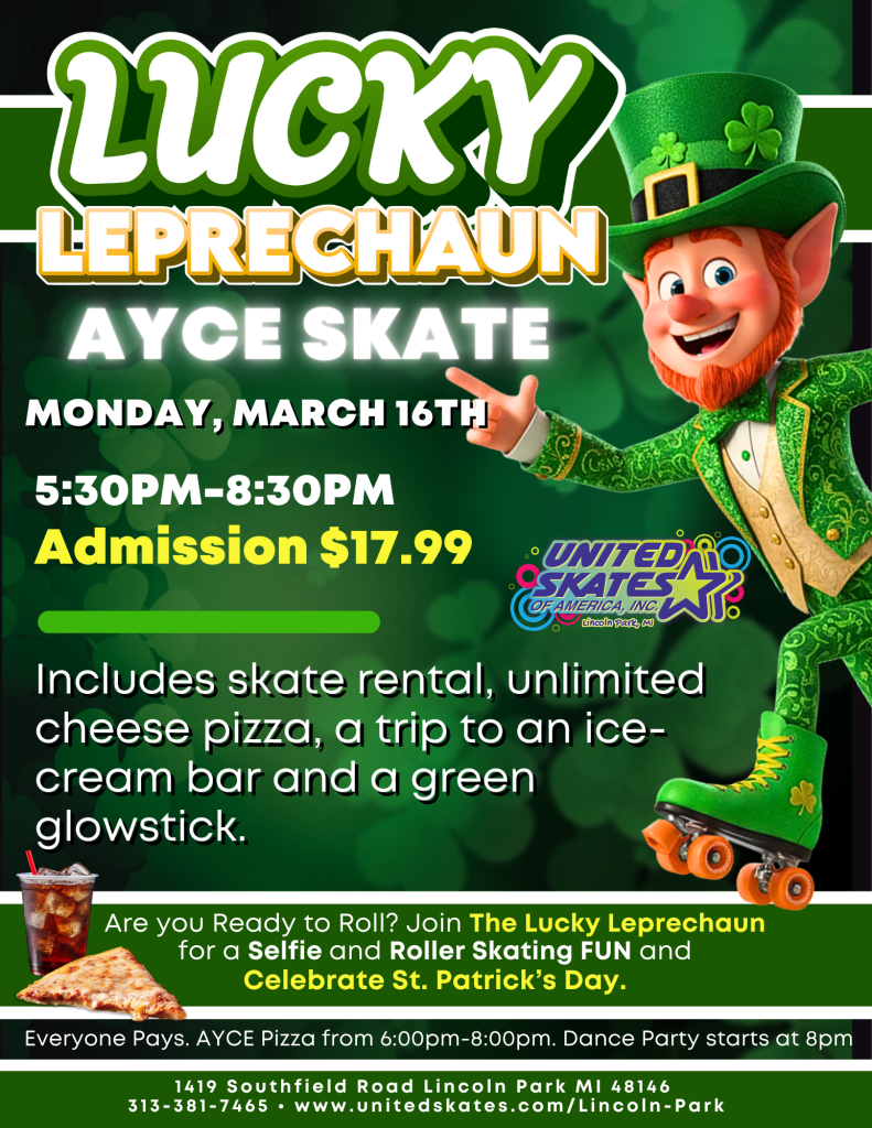 🌈 Wear green, bring your crew, and celebrate St. Patrick’s Day the LUCKY way! 🍀🛼✨