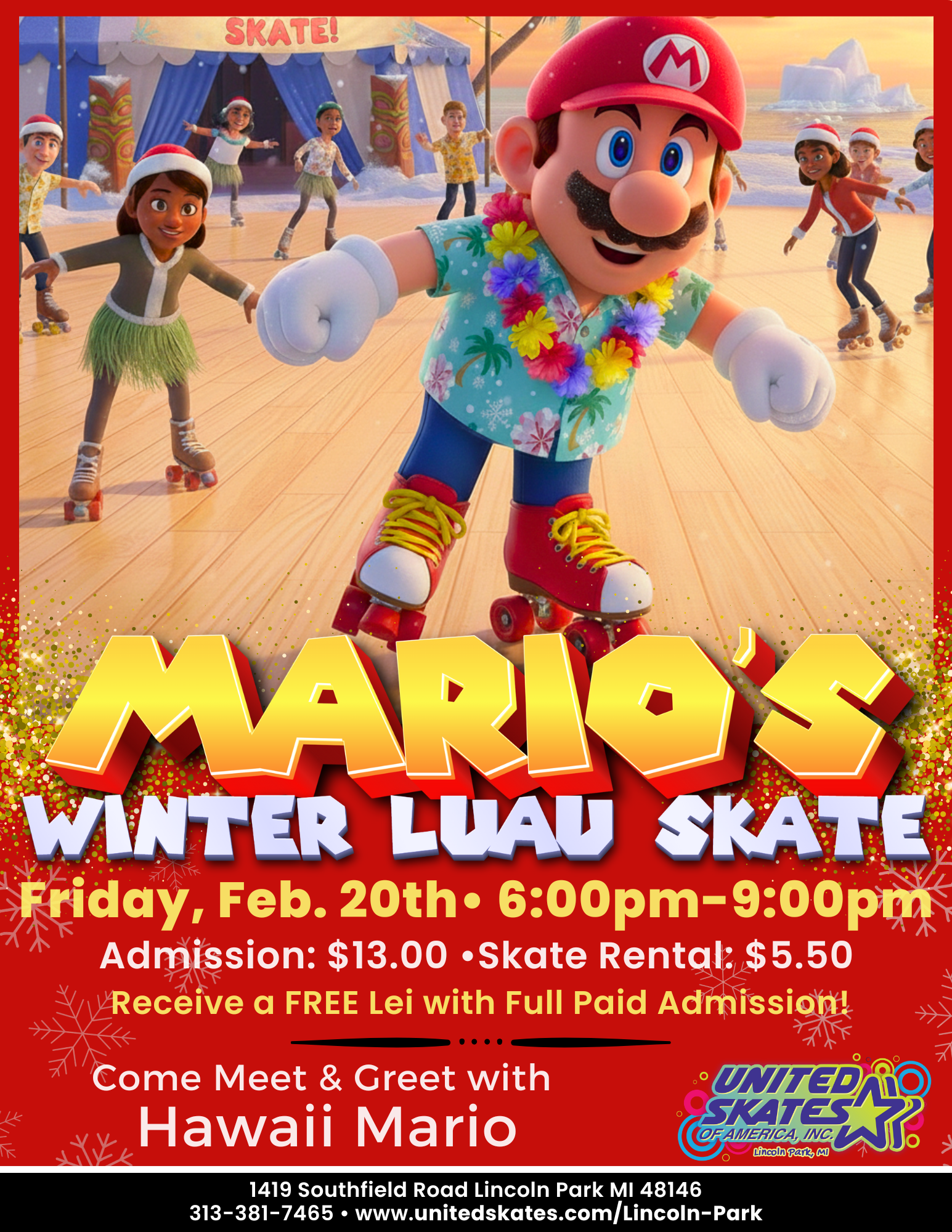 Come dressed in your best Winter Hawaiian outfits and get ready for a chilly-but-tropical glow up on the skate floor! ❄️🌴