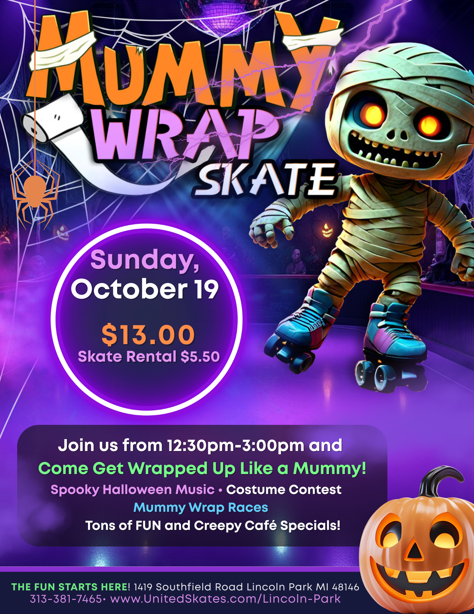 ✨ Compete for prizes, show off your wrapping skills, and enjoy a spooky, silly, unforgettable afternoon of skating and laughs.