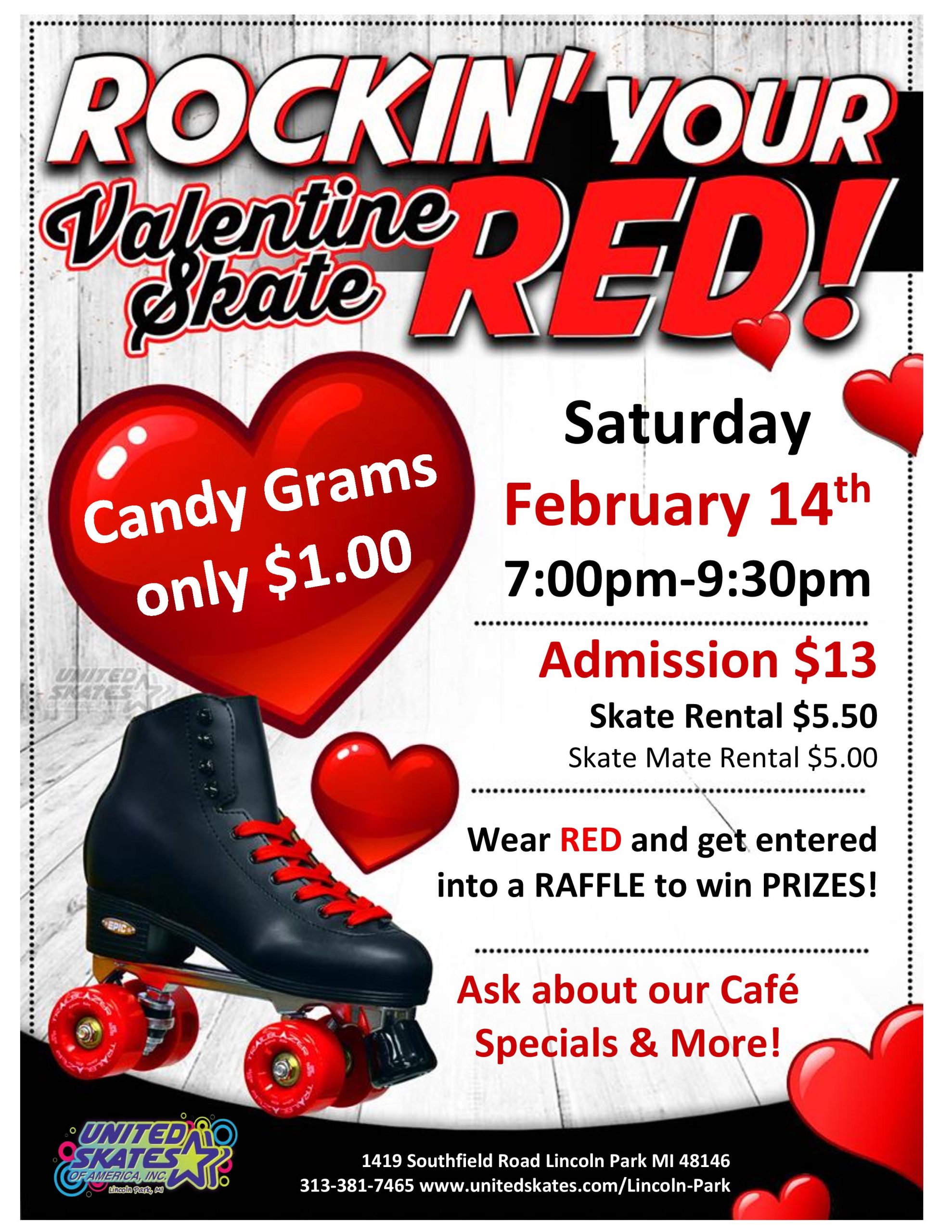 Join us for a night packed with music, energy, and nonstop fun as we celebrate in true United Skates style! Throw on your BEST red outfit and roll into the rink—because the more red you wear, the more you shine!