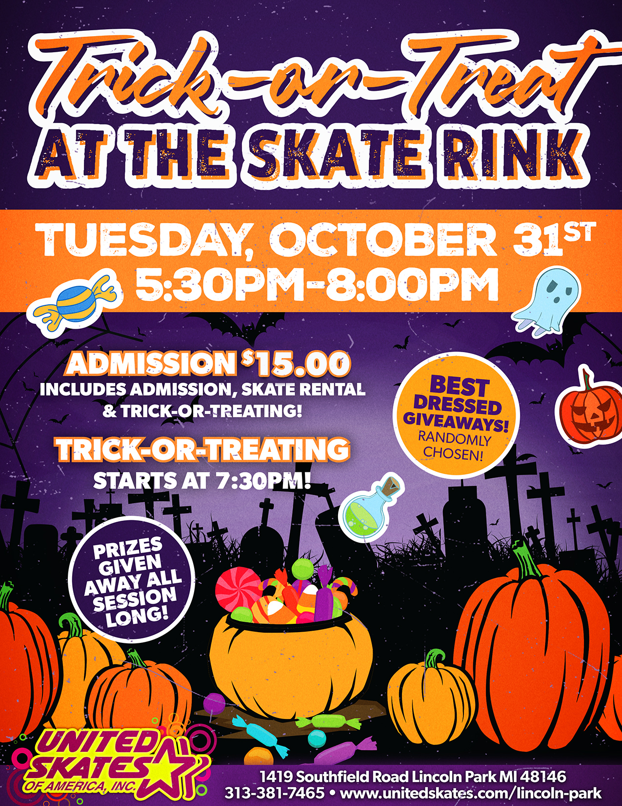 Are you ready for some Candy? It's Halloween it's all about the candy, and treats and don't forget tricks We want to see you, your families and friends all in their costumes! We love them all from cute to scary! Come out on Tuesday, October 31st from 5:30pm-8:00pm Admission $15.00 includes admission, skate rental, and […] |