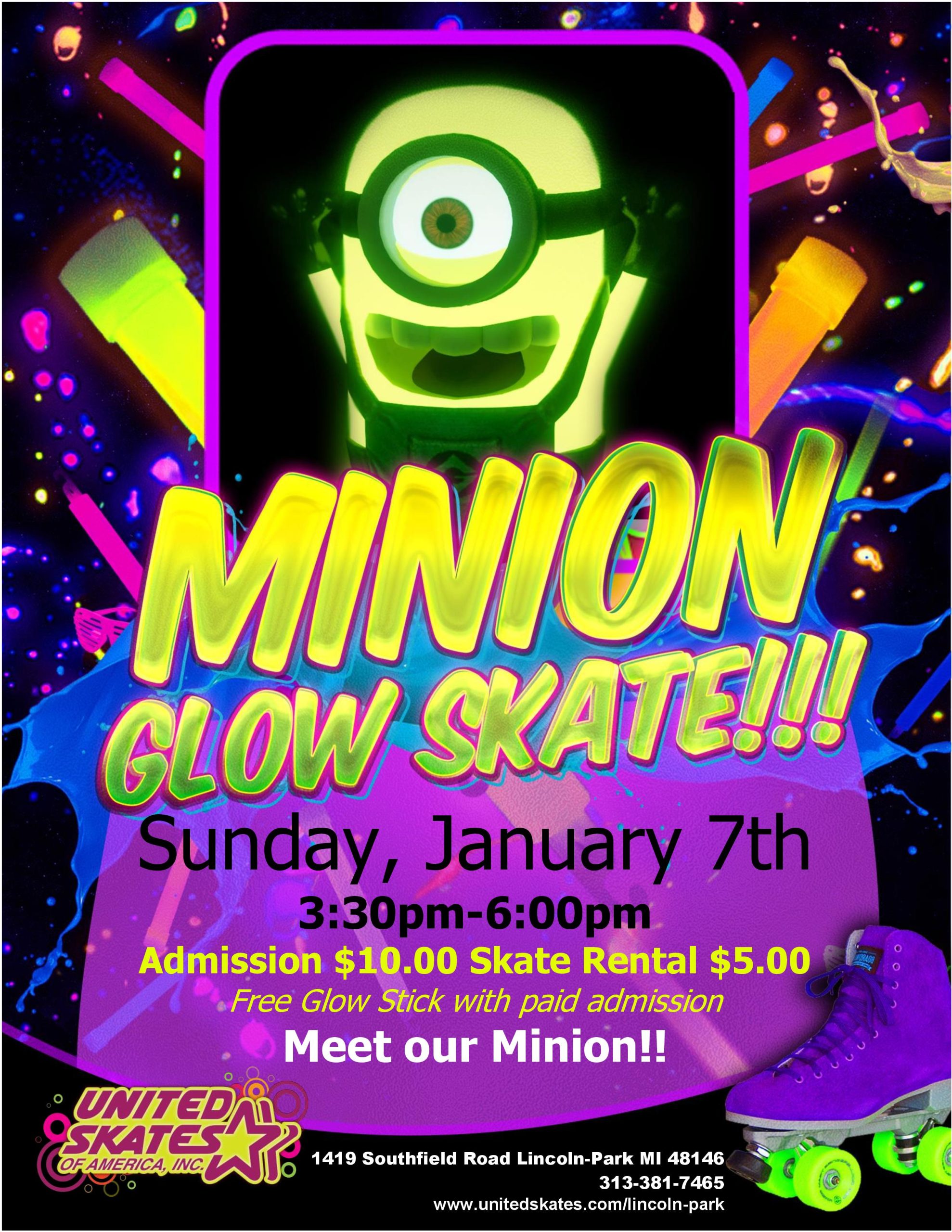 Who is ready for Minion-Nation? Well, our Minion is coming, and he is ready to have some roller-skating fun. He is even turning down our lights to have his very own Glow in the Dark Skate Make sure to come dressed in your brightest or whitest clothes, you'll glow! Sunday, January 7th 3:30pm-6:00pm Admission $10.00 […]