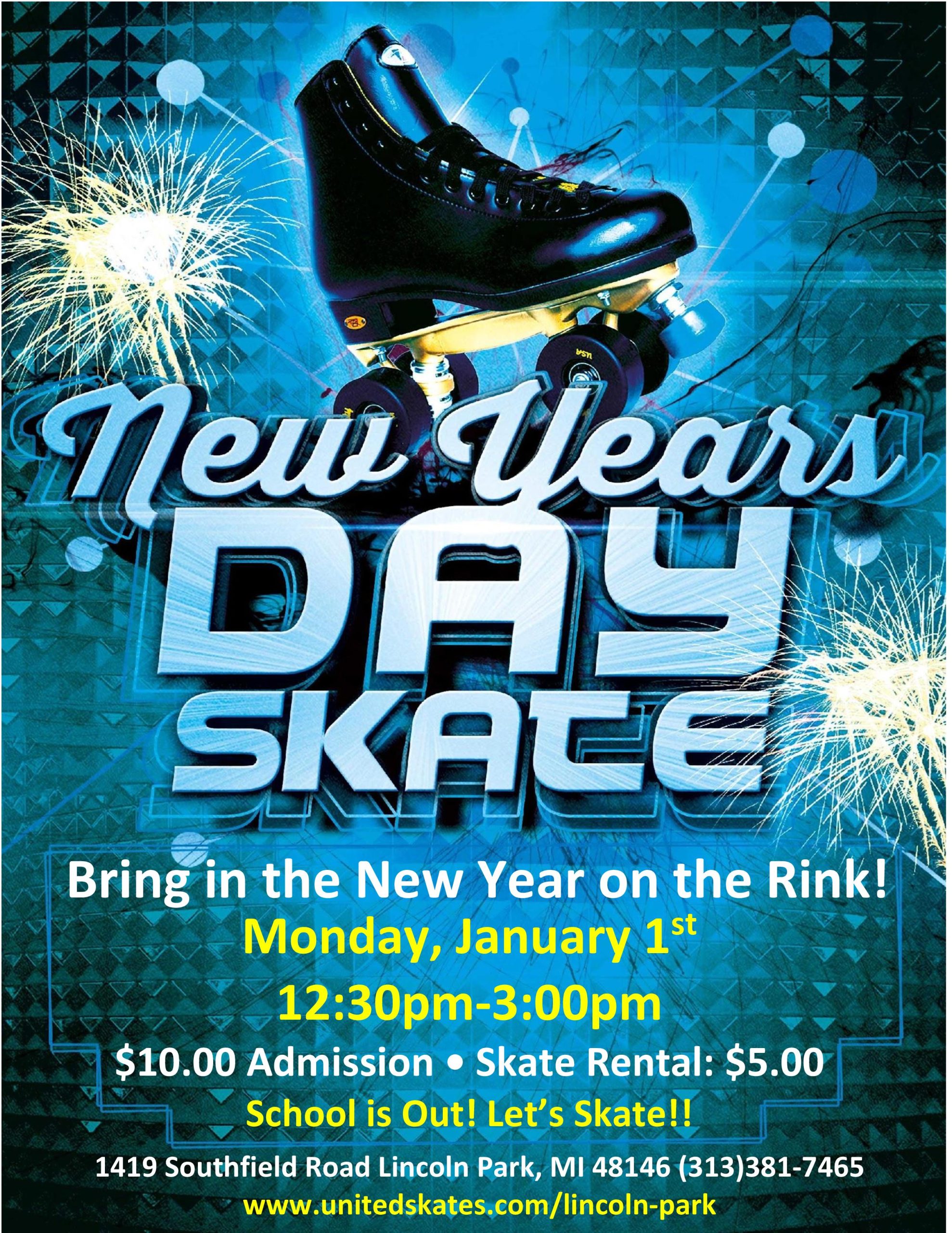 It's the New Year! School is still out! Let's get Skating! Bring your families and friends out for a day of fun! Monday, January 1st 12:30pm-3:00pm Admission $10.00 Skate Rental $5.00 Daycares, recs, YMCA's we are booking group outings! Call Madison at 313-381-7465
