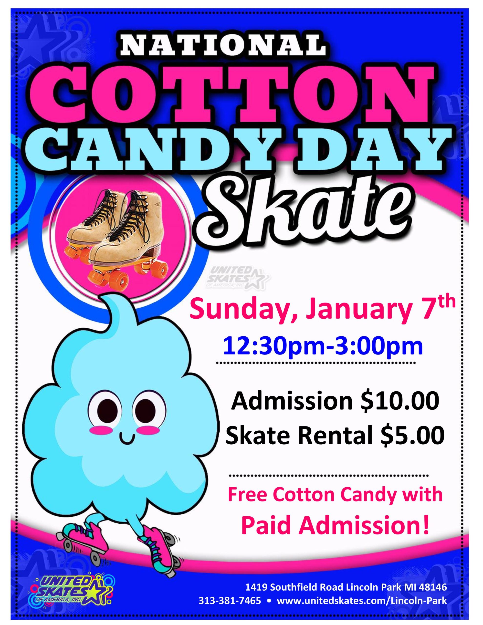Did you know about the National Cotton Candy Day?! Well, we did, and we are celebrating by giving you all FREE cotton candy! Woo HOO! You do not want to miss out on this. Come out with your sweet tooth on Sunday, January 7th 12:30pm-3:00pm Admission $10.00 Skate Rental $5.00 Get a FREE bag of […]
