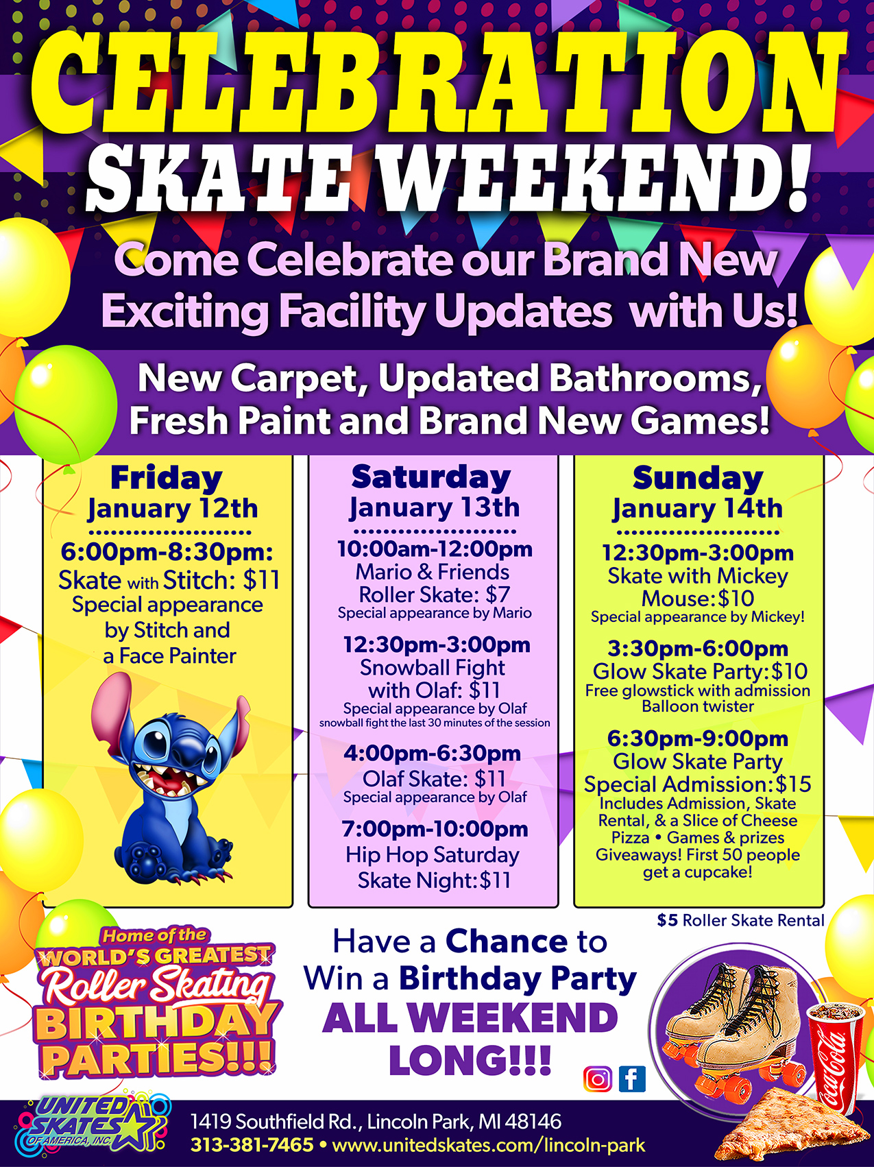 Book your Birthday Party! Birthday Parties available from 4:00pm-6:30pm Admission $11.00 Skate Rental $5.00 Featuring Pop and R&B Music Mix All children 12-17 years of age must come into our facility with a parent or guardian that is 25 years of age and older. United Skates of America Lincoln-Park is only allowing two (2) 12–17-year-old […]