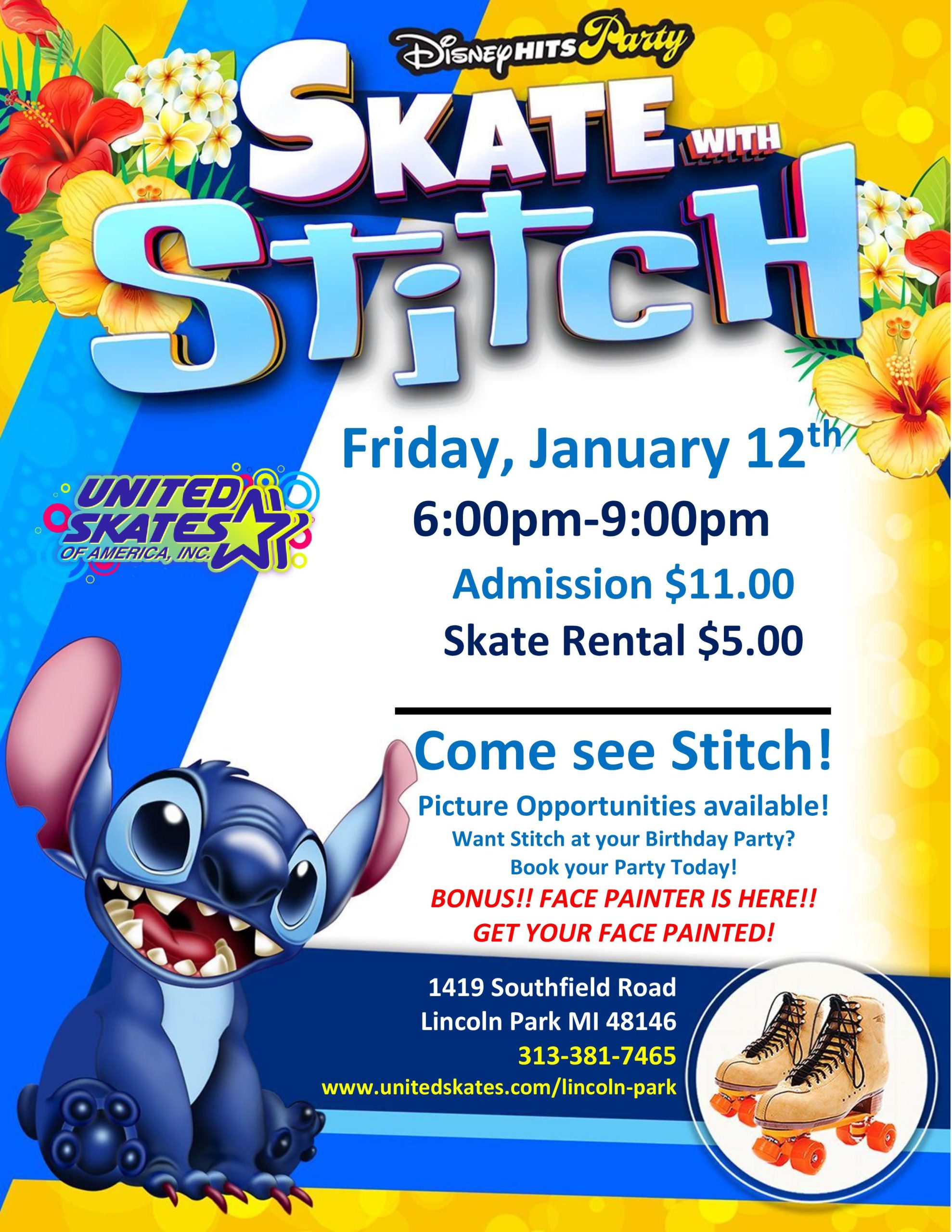 It's STITCH Time!! Come out and kick off your weekend on the right skate! Make sure to bring your cameras, picture opportunities are available! Friday, January 12th 6:00pm-9:00pm Admission $11.00 Skate Rental $5.00 Bonus!! You can even get your Face Painted!! All children 12-17 years of age must come into our facility with a parent […]