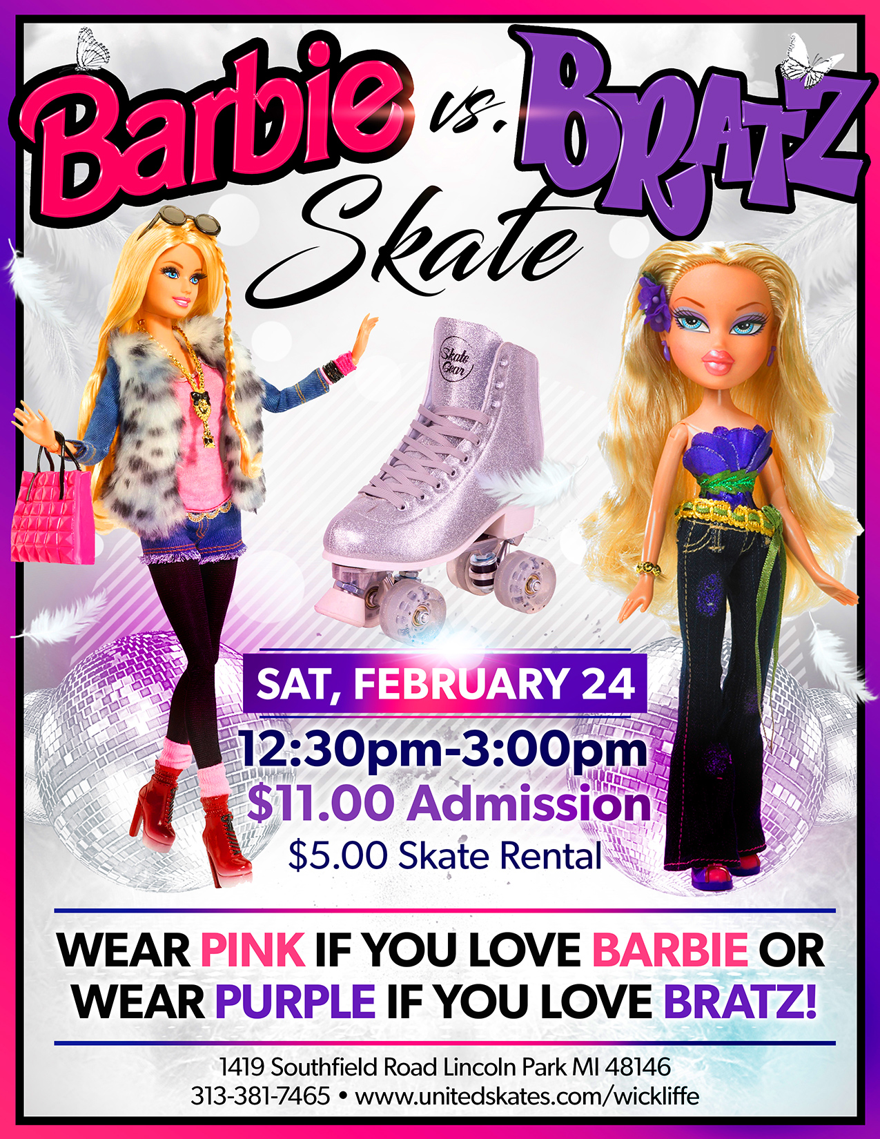 We want to know who is your favorite? Are you Team Barbie or Team Bratz?! Let's find out!! If you wear PINK your Team Barbie, if you wear PURPLE your Team Bratz Come out on Saturday February 24th 12:30pm-3:00pm Admission $11.00 Skate Rental $5.00 All children 12-17 years of age must come into our facility […]