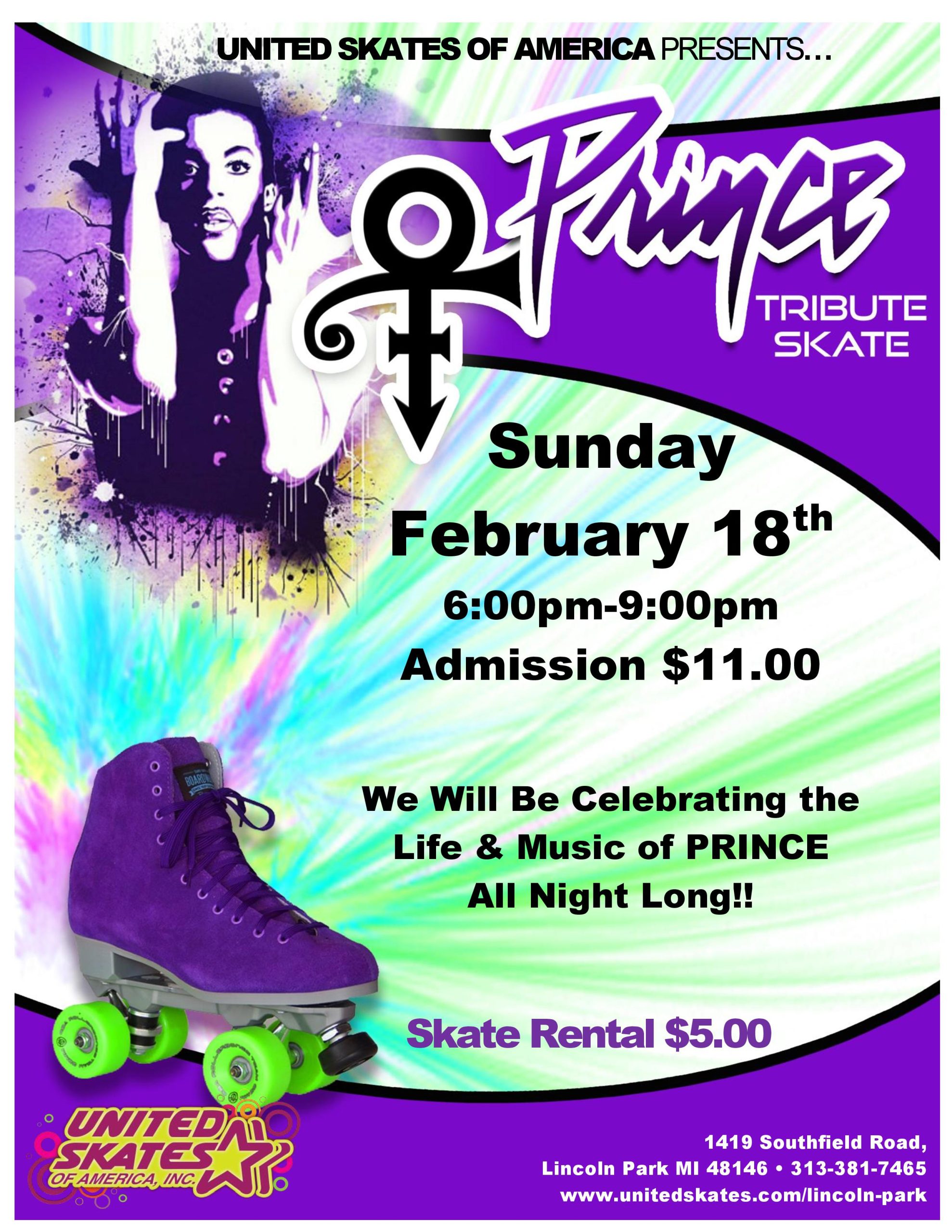 Let's pay dedication to one of the greatest! We are playing Prince Music ALL Session Long! Come out on Sunday, February 18th 6:30pm-9:00pm Admission $11.00 Skate Rental $5.00 All children 12-17 years of age must come into our facility with a parent or guardian that is 25 years of age and older. United Skates of […]