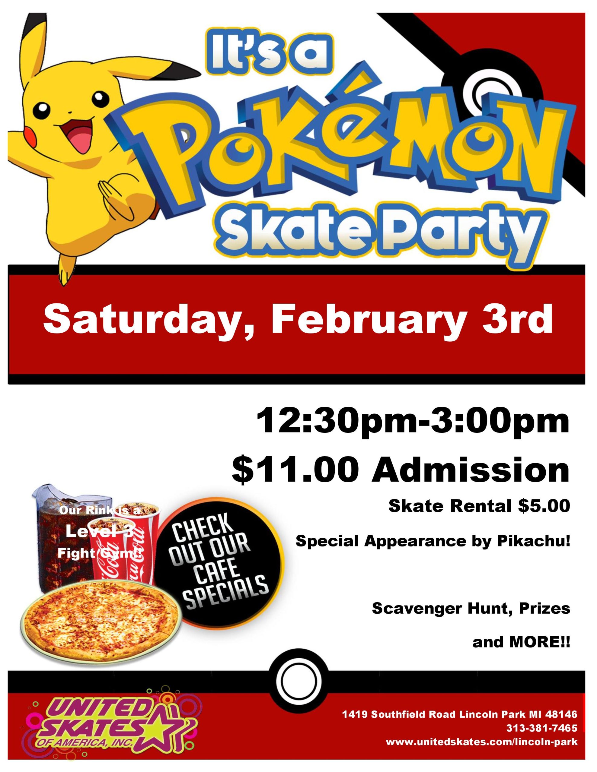 School’s Out! Let’s Skate!! It’s a Mystery…what will you WIN? That’s right we will be giving away Mystery Prizes ALL Three Sessions! Guess What?! There will be a Special Character Appearance! Monday, February 19th 12:30pm-3:00pm, 3:30pm-6:00pm. 6:30pm-9:00pm Admission $10.00 Skate Rental $5.00 Get a chance to WIN Icee’s, Free Admission, Pizzas and MORE!! We are […]