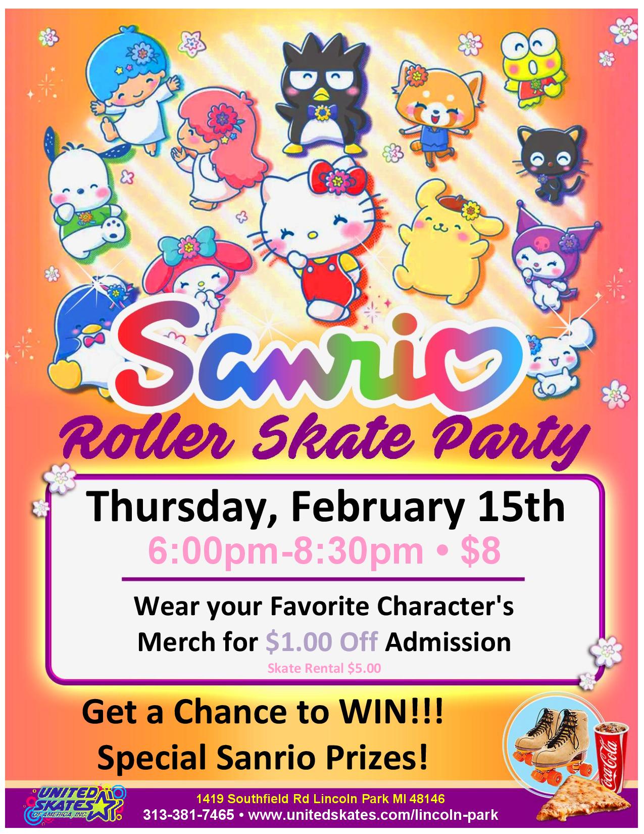 Do you love Sanrio? Well we are dedicating a whole session to Sanrio! We want to see your best and favorite Sanrio Gear! We will even give you a $1.00 discount off your admission if you wear your favorite Sanrio Character! Thursday, February 15th 6:00pm-8:30pm Admission $8.00 Skate Rental $5.00 We will also have Sanrio […]