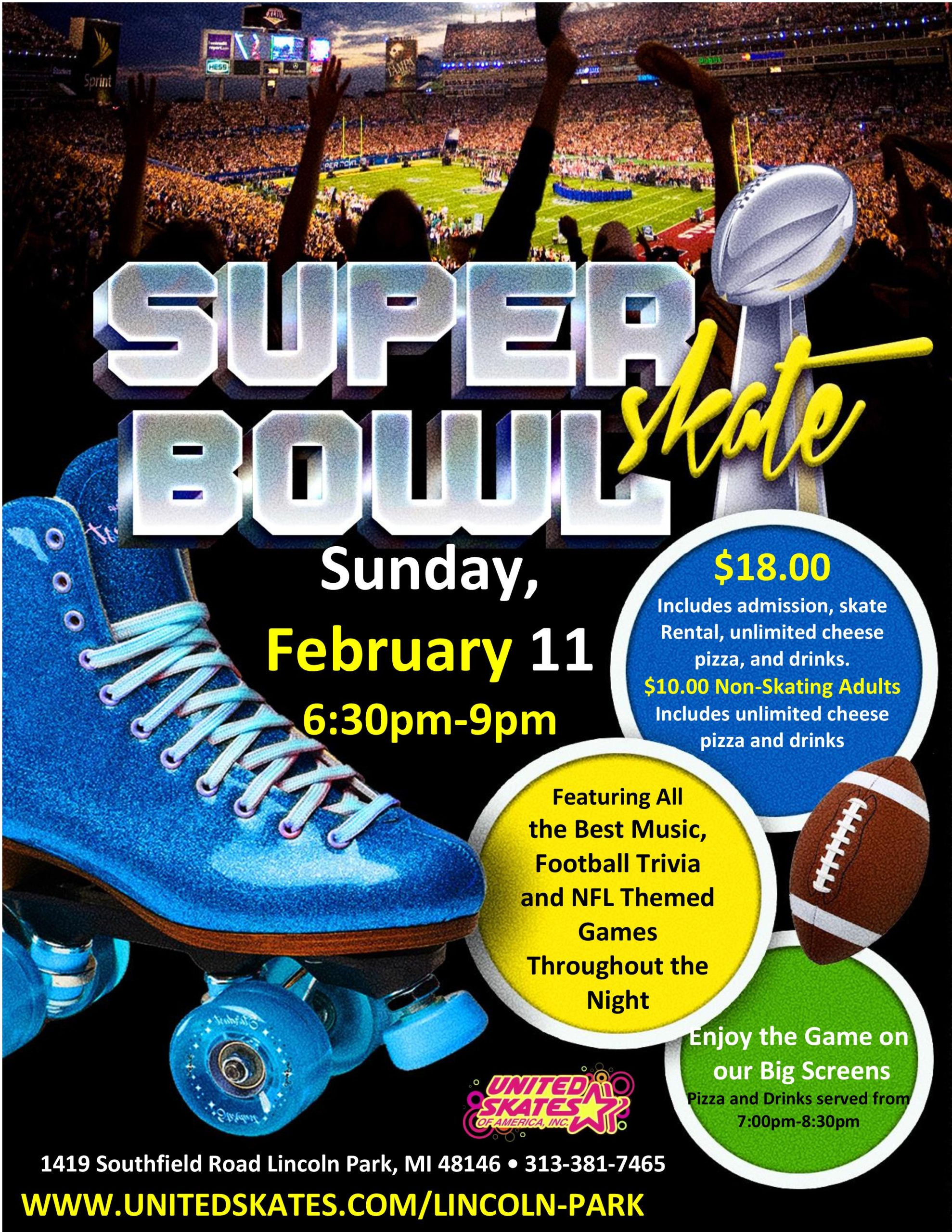 Who is ready for Football?! We are giving the Kids a chance to show off their Team Spirit!! We want to see you ALL dressed up in your favorite football team gear! We even will have Football Carnival Games!! Sunday, February 11th 12:30pm-3:00pm Admission only $15.00 includes admission, skate rental, a slice of cheese pizza […]